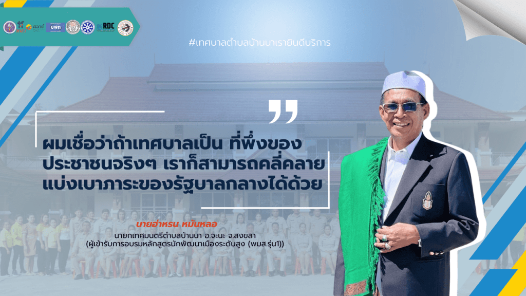 ผมเชื่อว่าถ้าเทศบาลเป็นที่พึ่งของประชาชน เราก็สามารถคลี่คลาย แล้วก็แบ่งเบาภาระของรัฐบาลกลางได้ด้วย เพราะว่าผมคิดว่าทํายังไงก็ได้ให้ชาวบ้านมีความสุข แต่เรื่องระบบก็ต้องว่าไป อย่างมาทําเรื่อง smart city เป็นเรื่องหนึ่งที่เราคิดว่าให้ชาวบ้านจะเข้ามาติดต่อประสานงานกับเทศบาลได้ง่ายที่สุด ช่องทางไหนก็ได้ บางคนเขาไม่อยากเดินท่งมา บางคนเขาไม่เข้าใจ ตัวอย่าง “แค่เรื่อง 191 บอกให้โทรไปเรื่องแก้ไขปัญหายาเสพติด ชาวบ้านยังไม่กล้าโทร” ต้องเข้าใจนะว่าชนบทกับเมืองหลวงน่ะ (ในเมือง) มันไม่เหมือนกัน คนในชนบทส่วนหนึ่งยังกลัวระบบราชการ ยังกลัวตํารวจ ยังกลัวโรงพยาบาล ยังกลัวการประสานงานทุกเรื่อง สมัยผมเป็นสมาชิก อบต.ใหม่ๆ ขนาดไปโรงพยาบาลต้องรอ อบต. ครับ และถ้า อบต. ไม่ว่าง แต่พรุ่งนี้ก็ได้ นั่นคือความเป็นจริง ในบริบทของชนบท “ผมก็เลยอยู่ในวงการนี้ อยู่รับรู้ปัญหามาตลอด ก็พยายามจะสนองความต้องการให้มากที่สุด ในฐานะผู้บริหาร ก็แล้วแต่ประชาชน ถ้าเขาเลือกต่อก็ทำต่อ ถ้าเขาไม่เลือกต่อก็หยุด หน้าที่ผมแค่นั้น”